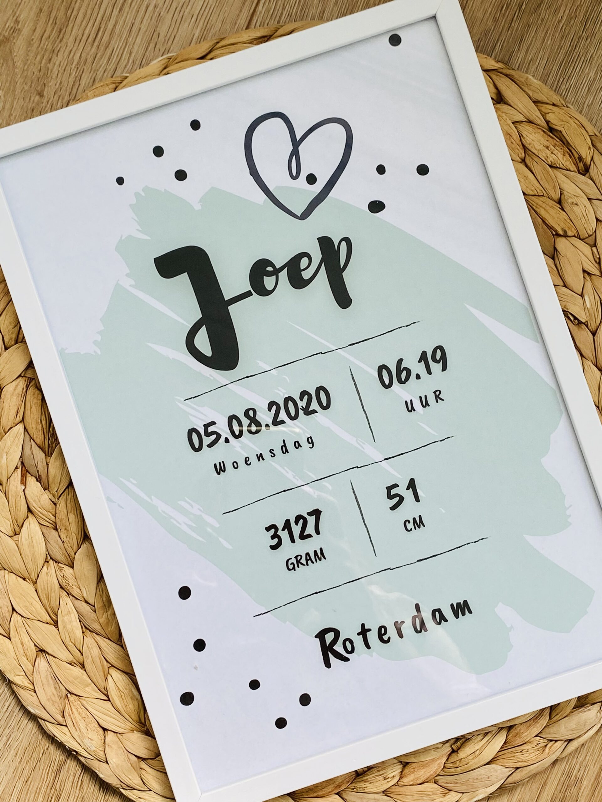 Geboorteposter Hart – mint