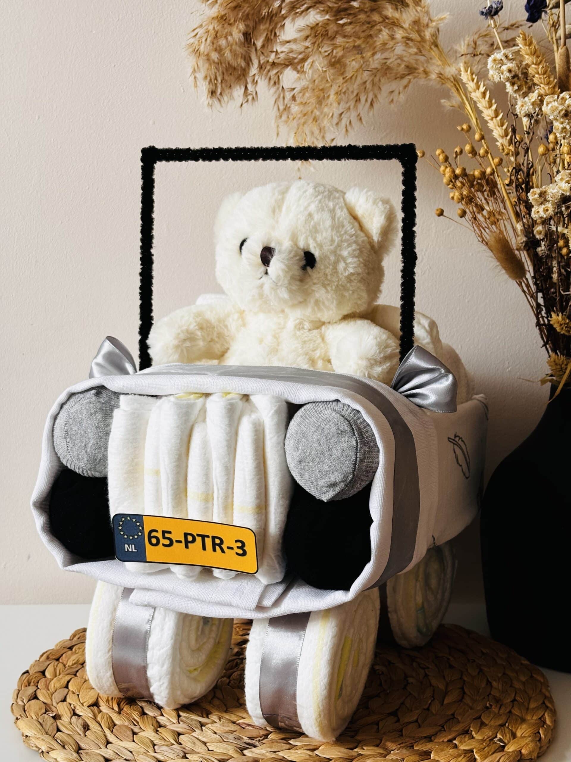 Originele luiertaart Auto met Beer – grijs!