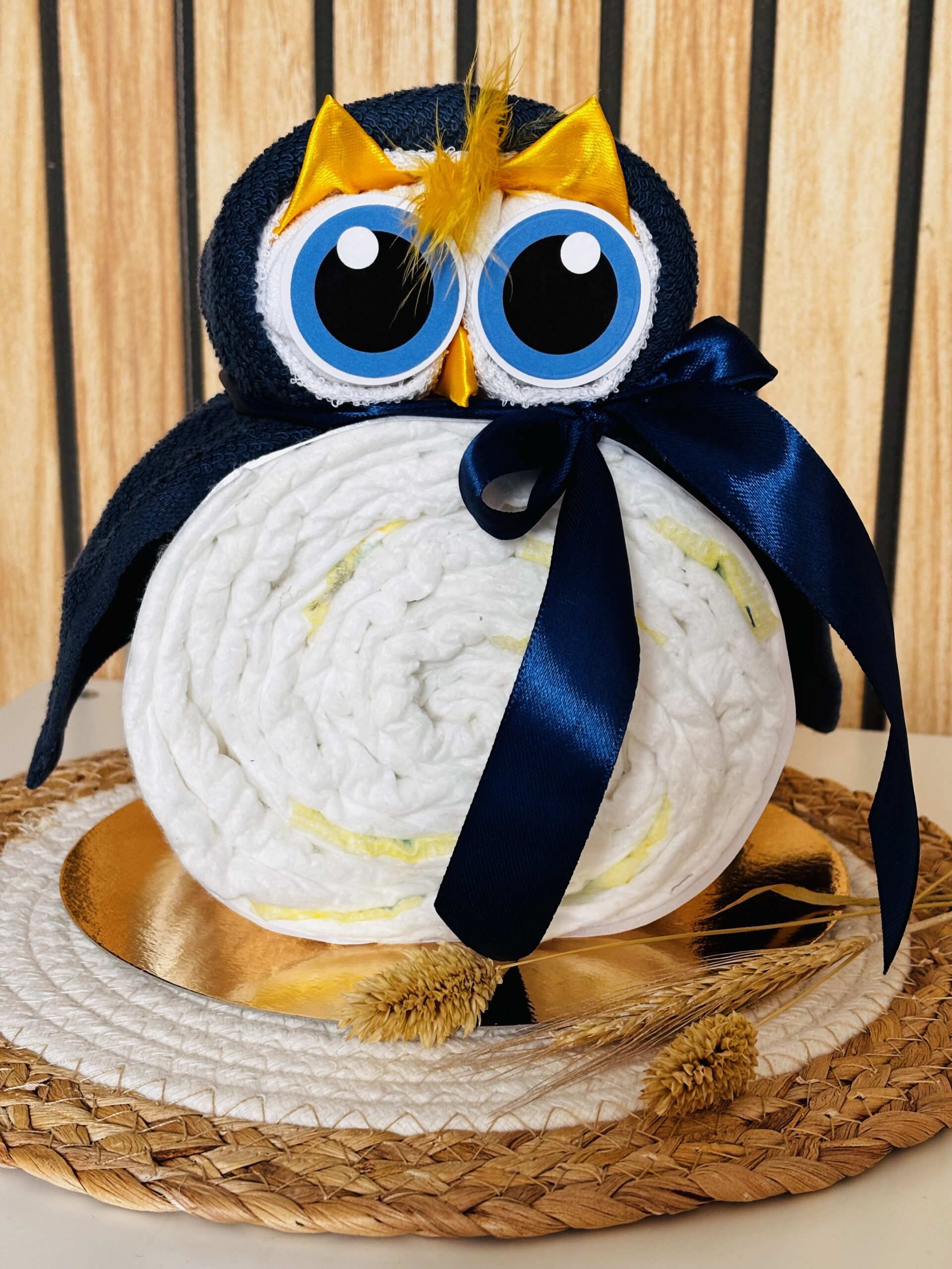 Originele luiertaart Baby Uiltje – donkerblauw!