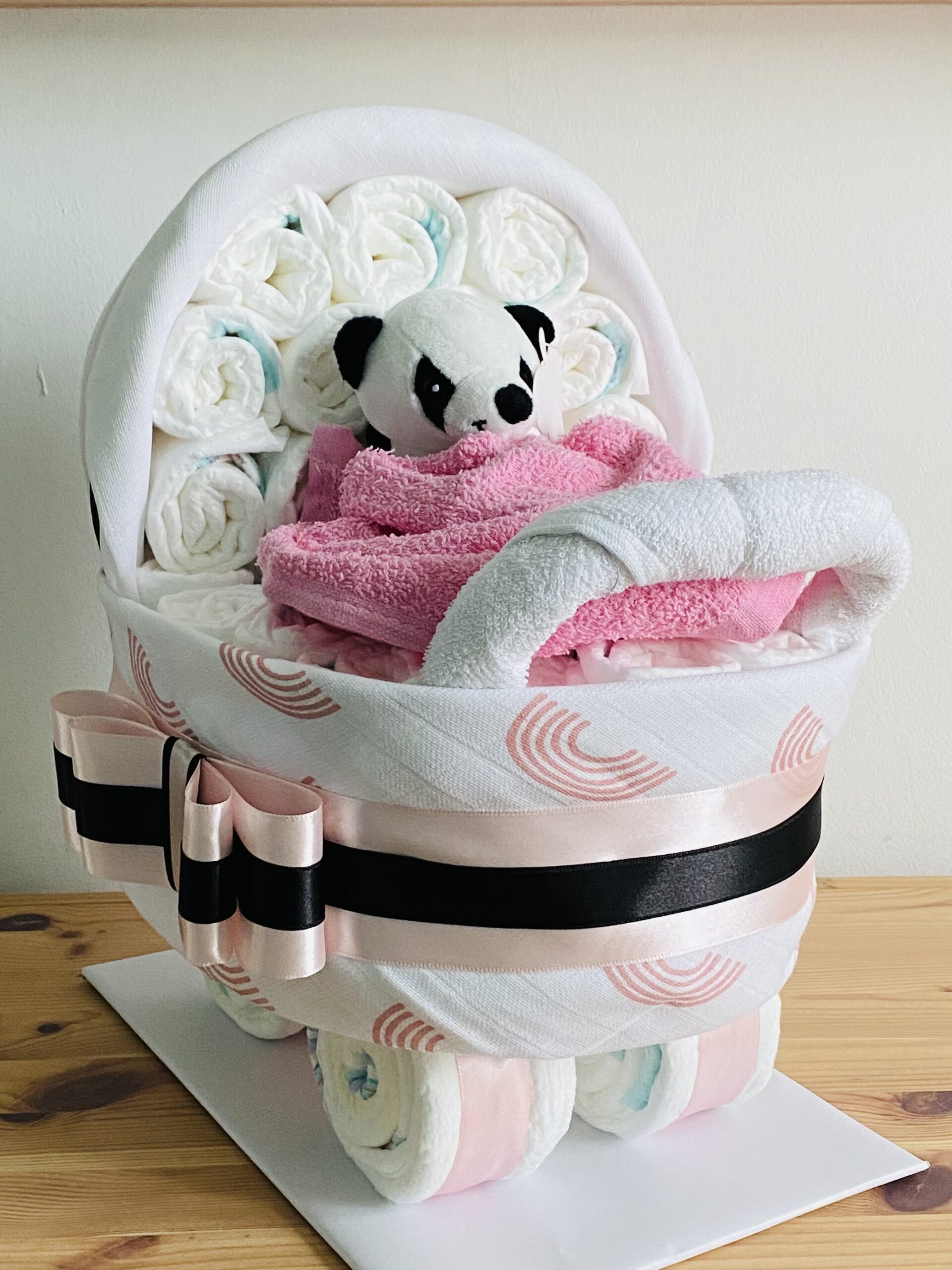 Originele luiertaart Wandelwagen – Panda – roze!